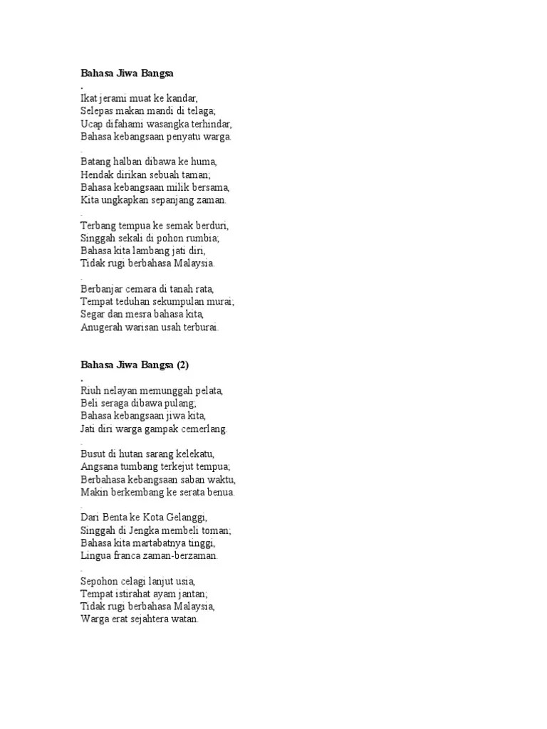Sebagai bangsa yang masih baharu kita masih jauh untuk bersaing dengan negara-negara maju namun jikalau tradisi membaca terus diperkasakan insya-Allah kita juga akan menjadi bangsa yang berjaya. Sajak Bahasa Jiwa Bangsa Maksud Latihan Pantun Bahasa Melayu Geng Sekolah. Jika didapati salah pilih jawapan yang tepat bagi menggantikan bahagian yang bergaris itu.